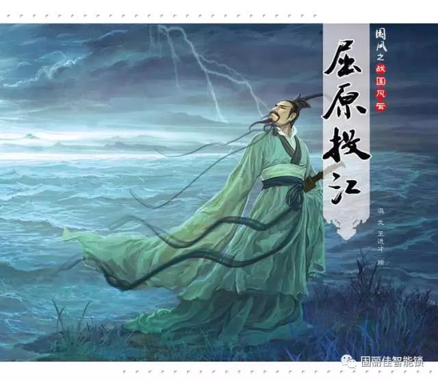 據(jù)《史記》“屈原賈生列傳”記載,屈原,是春秋時期楚懷王的大臣。他倡導舉賢授能,富國強兵,力主聯(lián)齊抗秦,遭到貴族子蘭等人的強烈反對,屈原遭饞去職,被趕出都城,流放到沅、湘流域。他在流放中,寫下了憂國憂民的《離騷》、《天問》、《九歌》等不朽詩篇,獨具風貌,影響深遠(因而,端午節(jié)也稱詩人節(jié))。公元前278年,秦軍攻破楚國京都。屈原眼看自己的祖國被侵略,心如刀割,但是始終不忍舍棄自己的祖國,于五月五日,在寫下了絕筆作《懷沙》之后,抱石投汨羅江身死,以自己的生命譜寫了一曲壯麗的愛國主義樂章。
