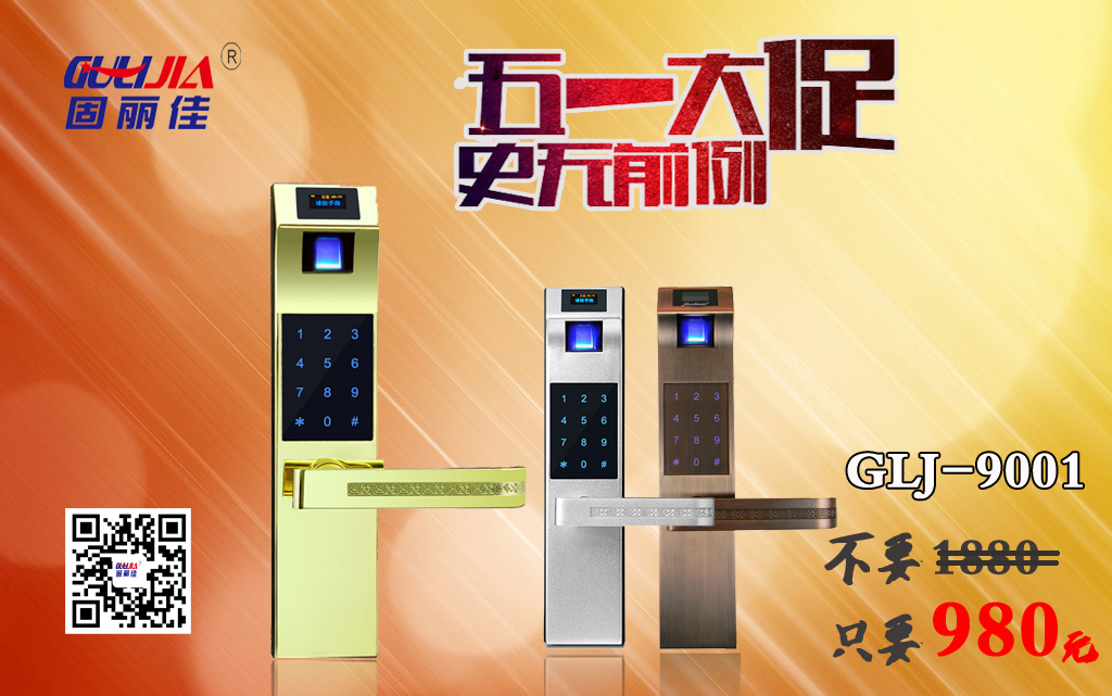 為感謝廣大顧客的支持,廣州固麗科技電子有限公司在五一勞動節(jié)期間將熱銷款指紋密碼鎖,大促銷!大促銷!大促銷!??!